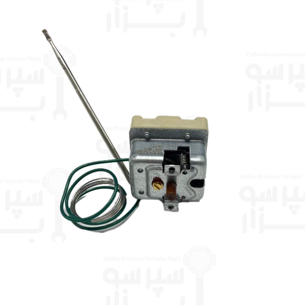 ترموستات ها با هدف جلوگیری از افزایش دمای بیش از حد، نقش محافظتی برای دستگاه اسپرسو شما دارند. دمای عملکرد ترموستات های هدگروپی معمولا حدود ۹۰-۹۵ و بویلری حدود ۱۶۰-۱۷۰ است. معمولا ترموستات های هدگروپ ریست اتوماتیک دارند.